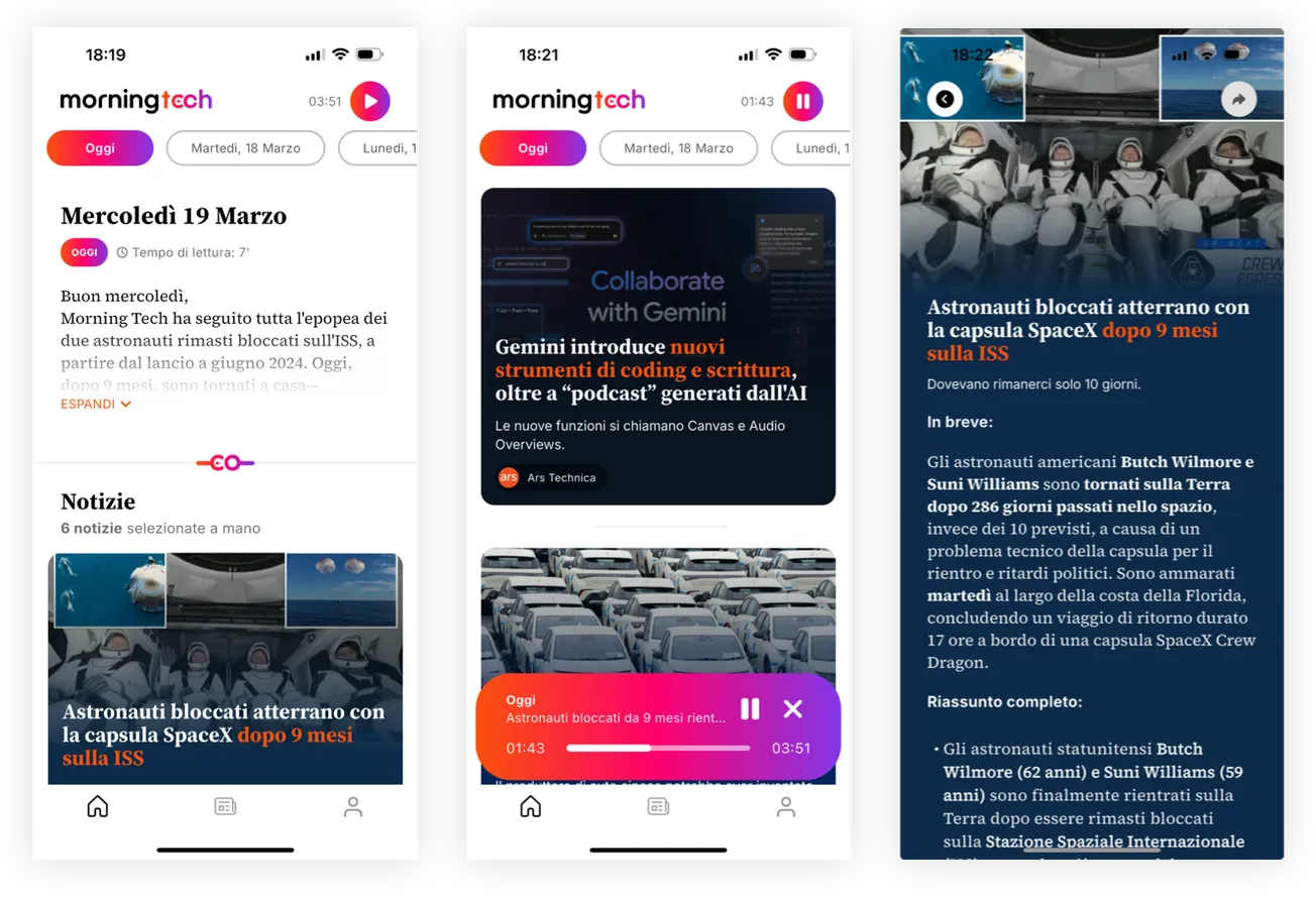 Questa rassegna, preparata meticolosamente a mano da un essere umano, ti viene anche letta a voce, in modo da poterla consultare mentre vai a lavoro in macchina o mentre prepari la colazione.