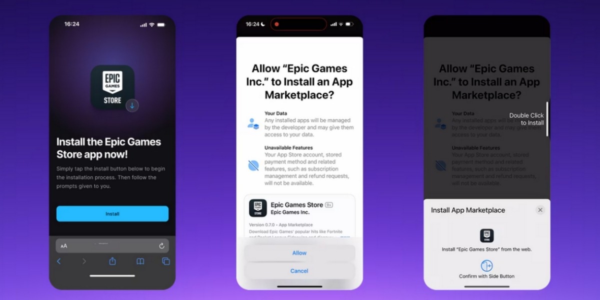 Il tasso di abbandono nell'installazione dello store di Epic Games su iOS è diminuito del 60% grazie alle modifiche di Apple (ottenute in seguito a una semi-vittoria legale di Epic durata anni) che prevedevano una schermata d'intermezzo che intimoriva l'utente. Nonostante ciò, Epic Games accusa ancora Apple e Google di violare il Digital Markets Act, citando commissioni eccessive e ulteriori processi di installazione ostacolanti.