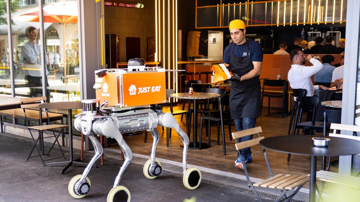 Just Eat Takeaway.com e RIVR (azienda di robotica svizzera) hanno avviato a Zurigo un programma pilota con "robo-delivery-dog" per la consegna di fast food. I robot, dotati di intelligenza artificiale "fisica", rappresentano la prima sperimentazione in Europa di robotica ibrida a quattro zampe per la consegna a domicilio.